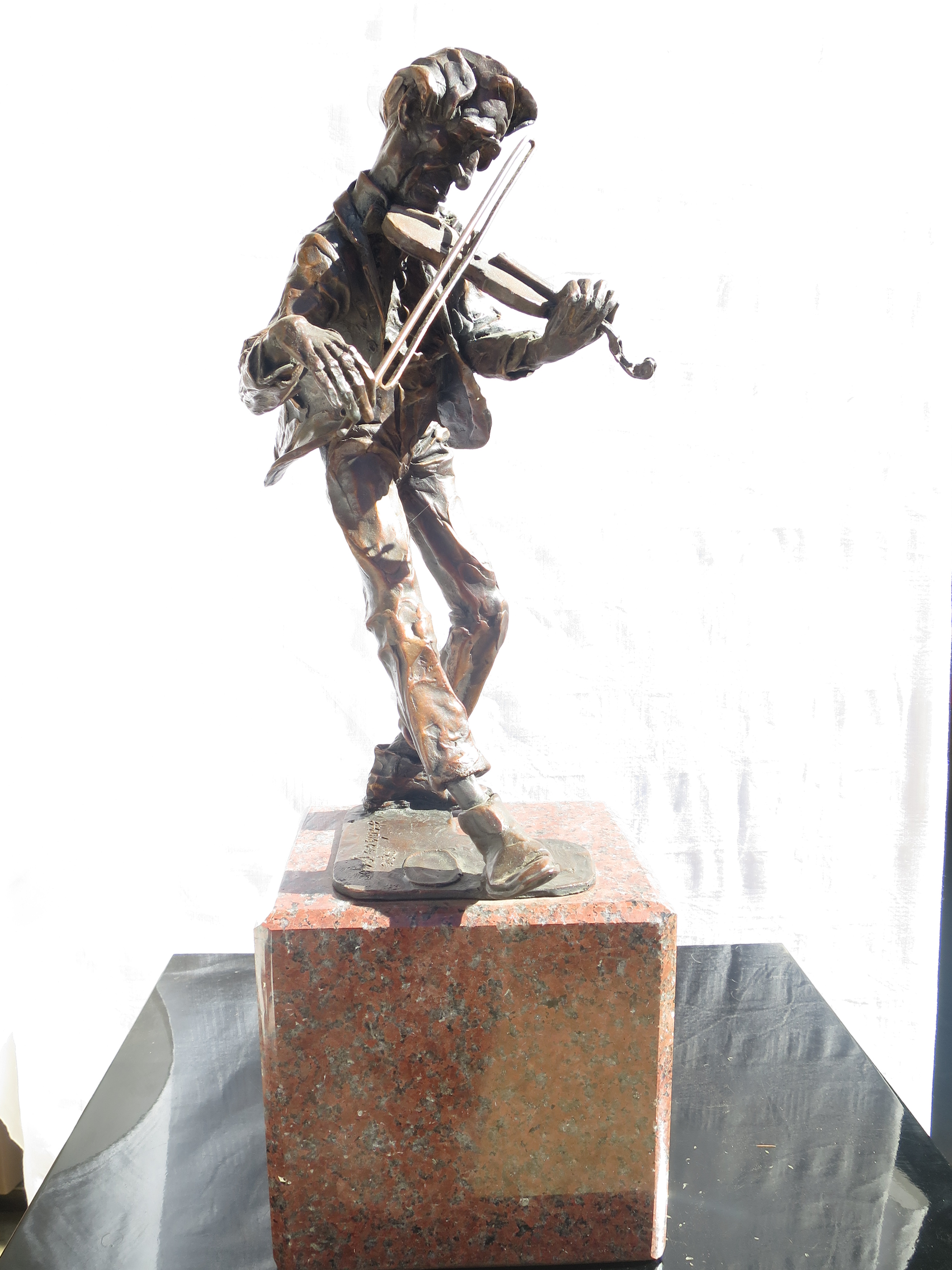 Small sculptures are mounted on granite base